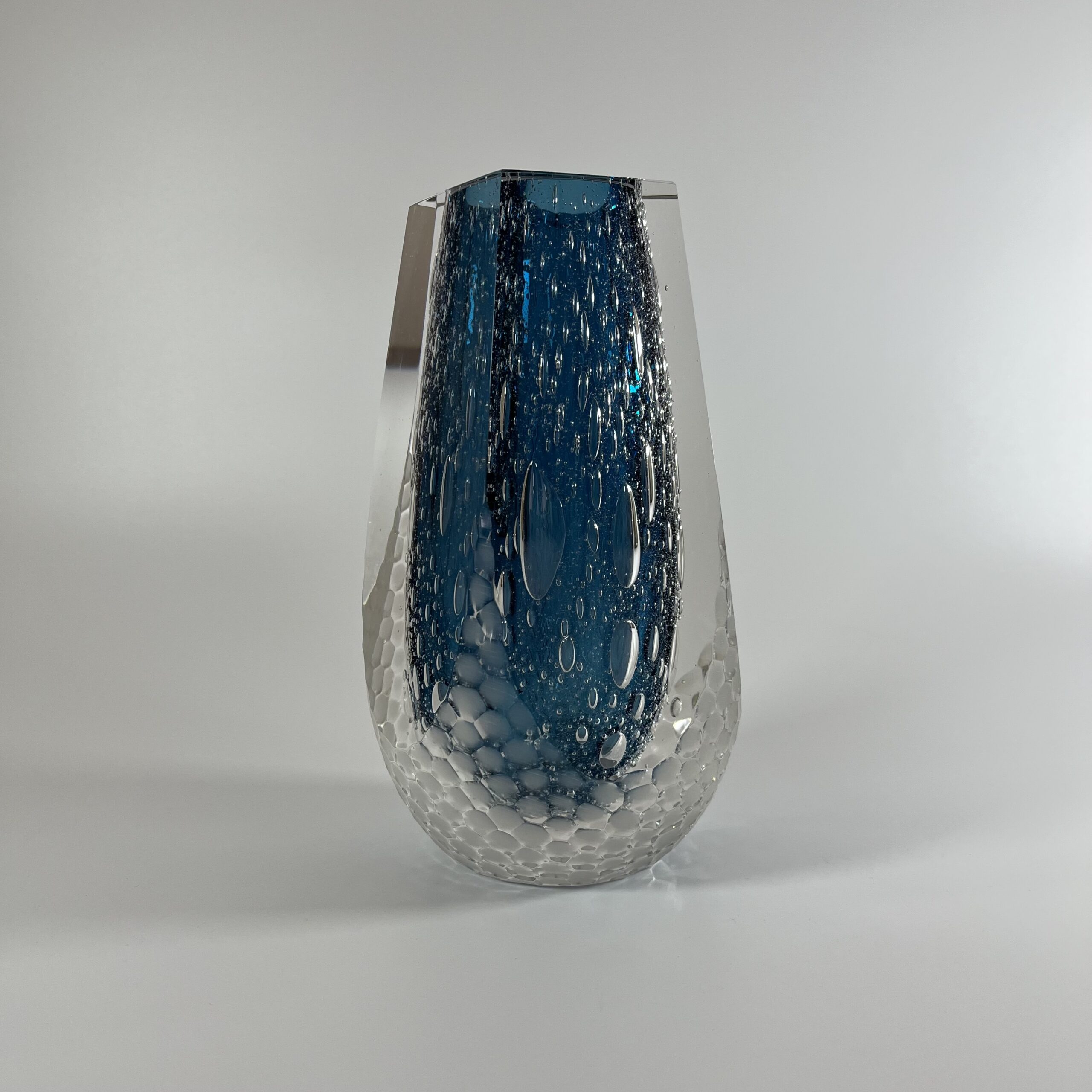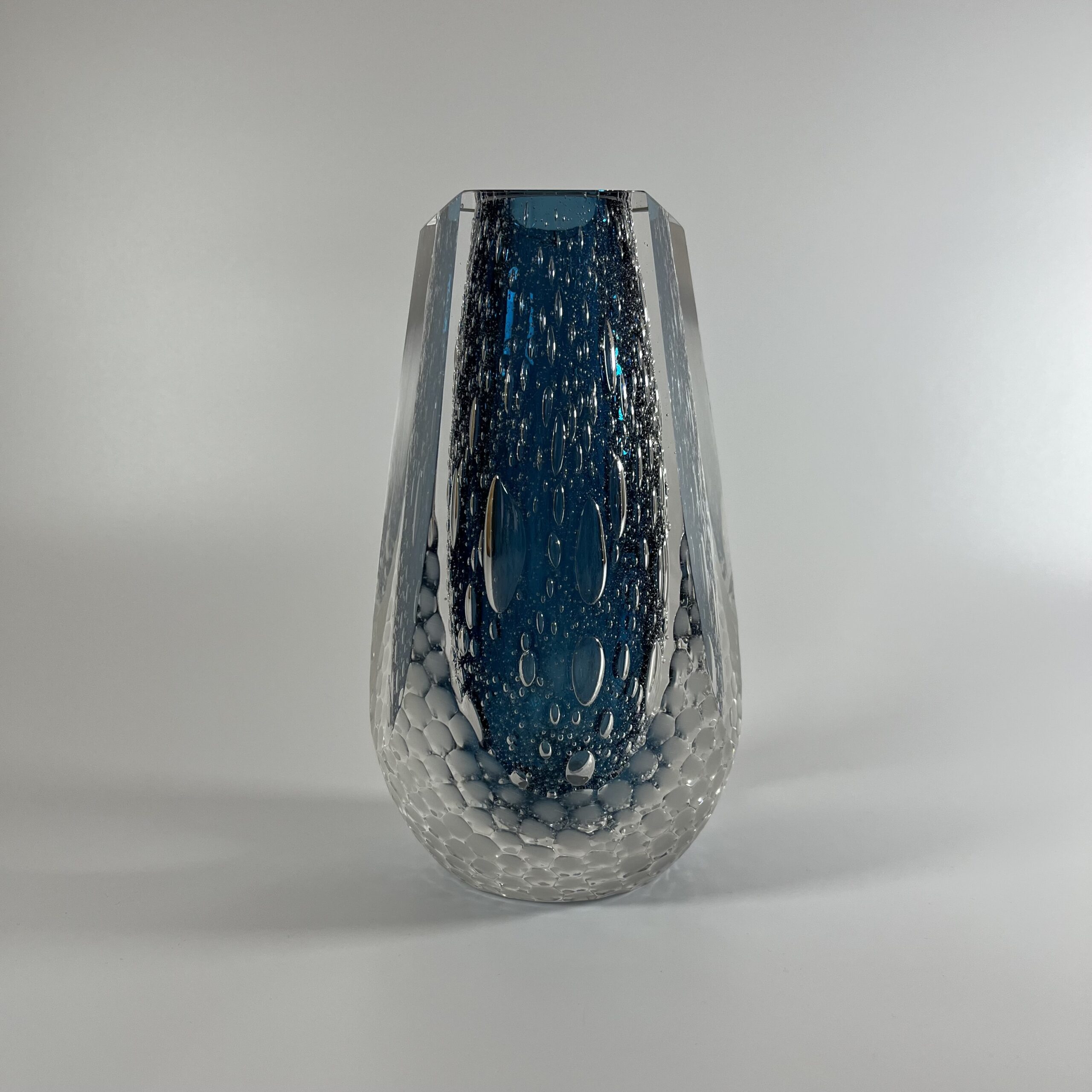 Hranovaná váza Rainfall s barevným jádrem s bublinami a křišťálem
